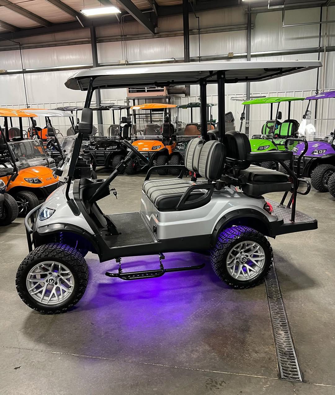 This is the top of the line golf cart. It is loaded with every part you would ever need. This cart will run 30mph. It has a digital dash that shows your battery life, voltage, speed, & odometer. Maintenance Free AGM batteries: no water or corrosion ever! 3 year manufacture warranty.